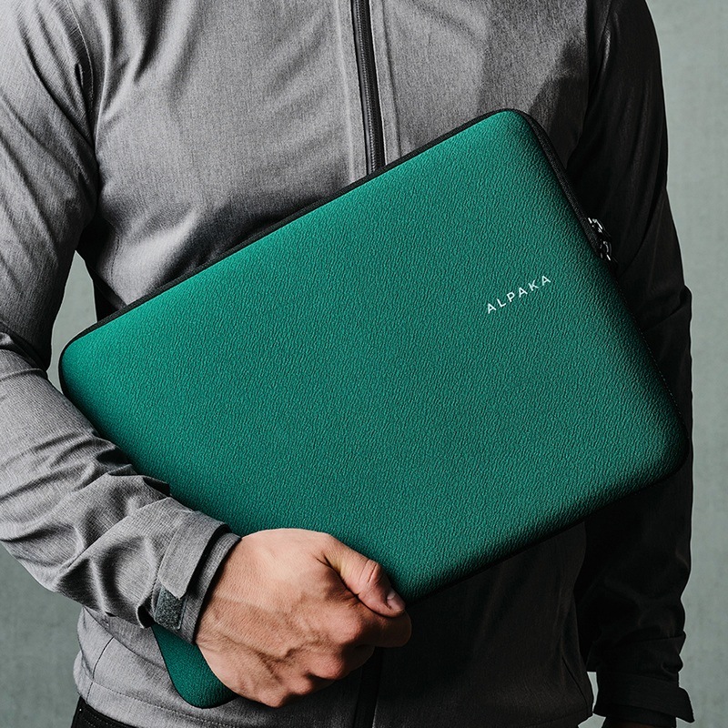 裏地はマイクロフリースの生地で、内部はしっかりとしたパッドが入っており、衝撃、傷、その他の予期せぬアクシデントからノートパソコンを保護します。またコーナーに保護フラップが付いています。