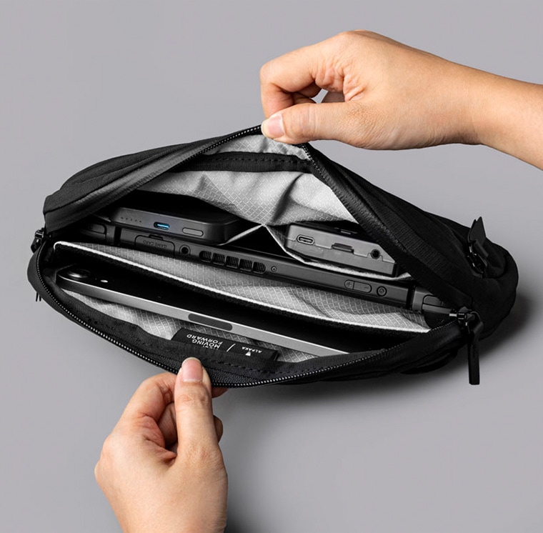 フライトスリングは旅行に持ち運んだり、ストラップを取り外してスタイリッシュなテックポーチとして使用できます。