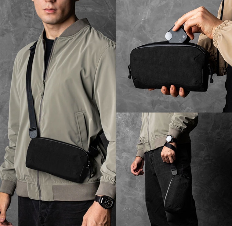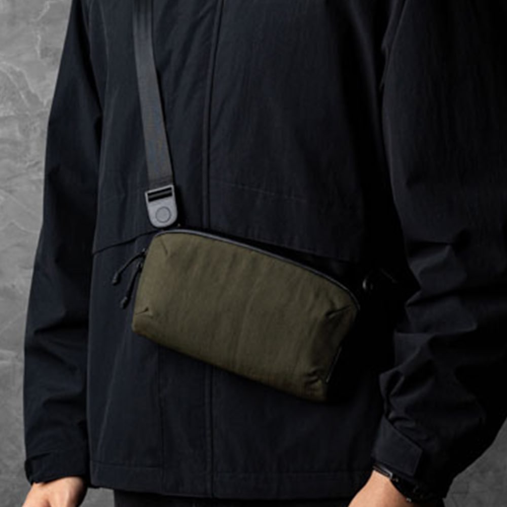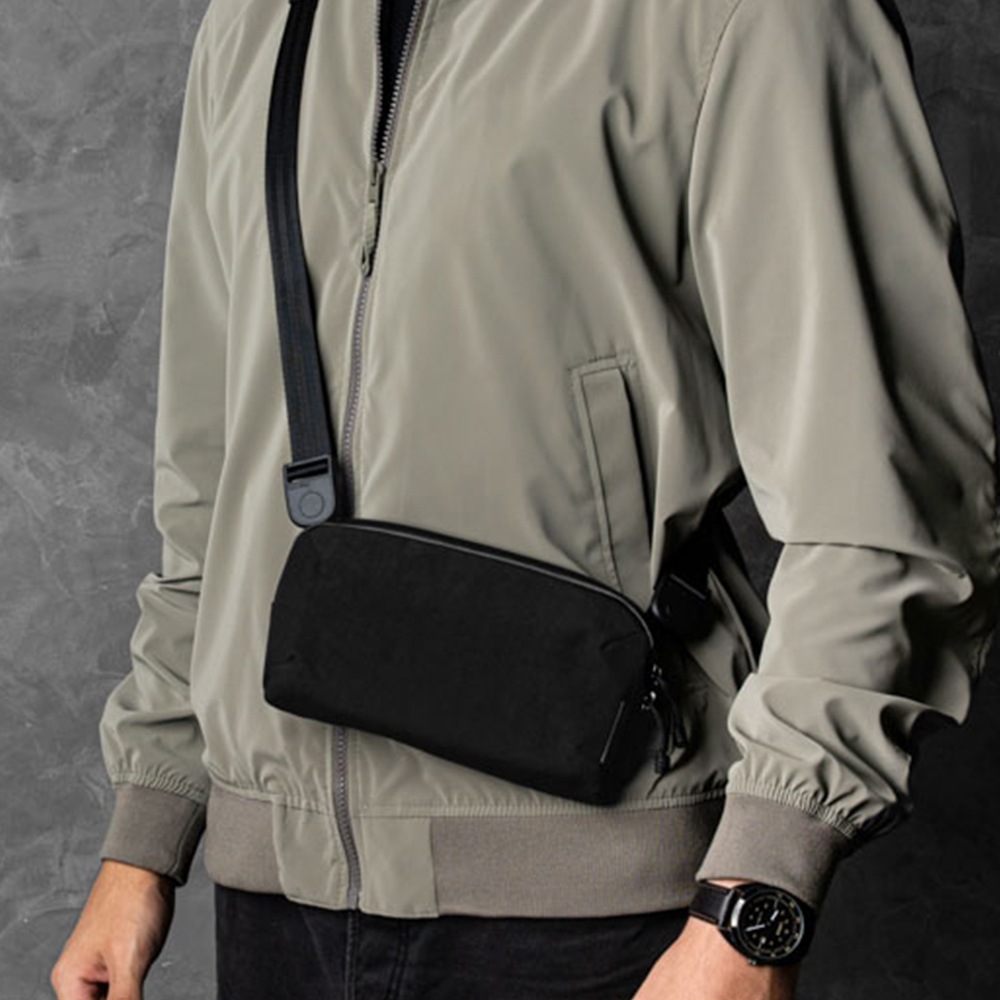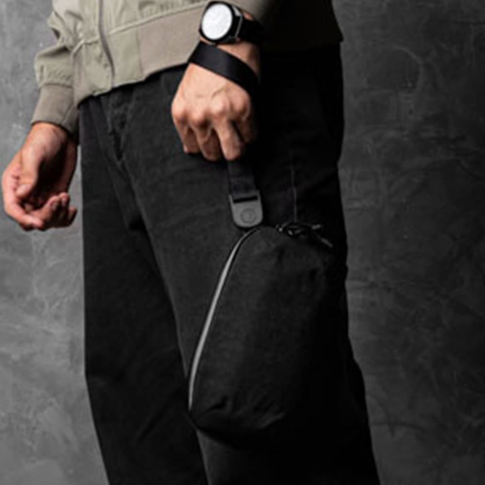 アークテリクスのマンティス1(1.5L)が、とても利便性よく、意外なほどに収納力もあるのだが、最近、何回か海外出張があり、マンティスだと少しカジュアル寄りなのと、そこまで収納力がなくて良く、パスポートとeチケット、AirPodsとモバイルバッテリーとウェットティッシュ、マスク、ボールペンだけのミニマムサイズがないかと探して、この商品に至る。