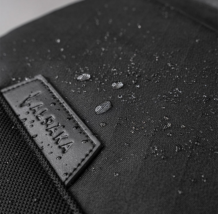 | 自社開発の4層ラミネート構造。耐久性と環境への配慮を兼ね備え、ベースとなるのは、補強用の裏地が付いた100%リサイクルAxoflux生地。グリッド補強で耐引裂性を高め、環境に優しいC0防水膜で仕上げています。 |