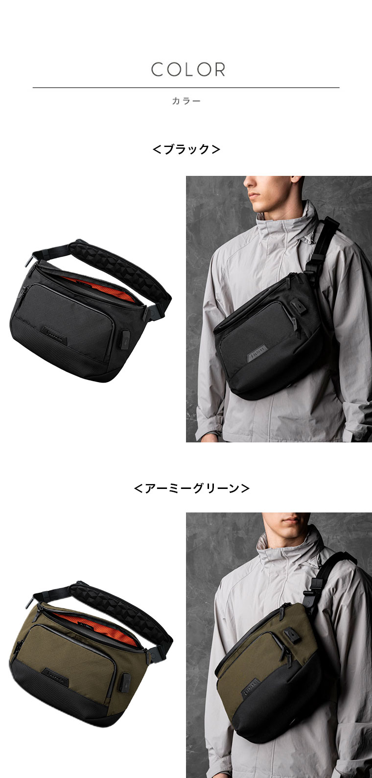 | たっぷり収納できる多機能性スリングバッグ |
