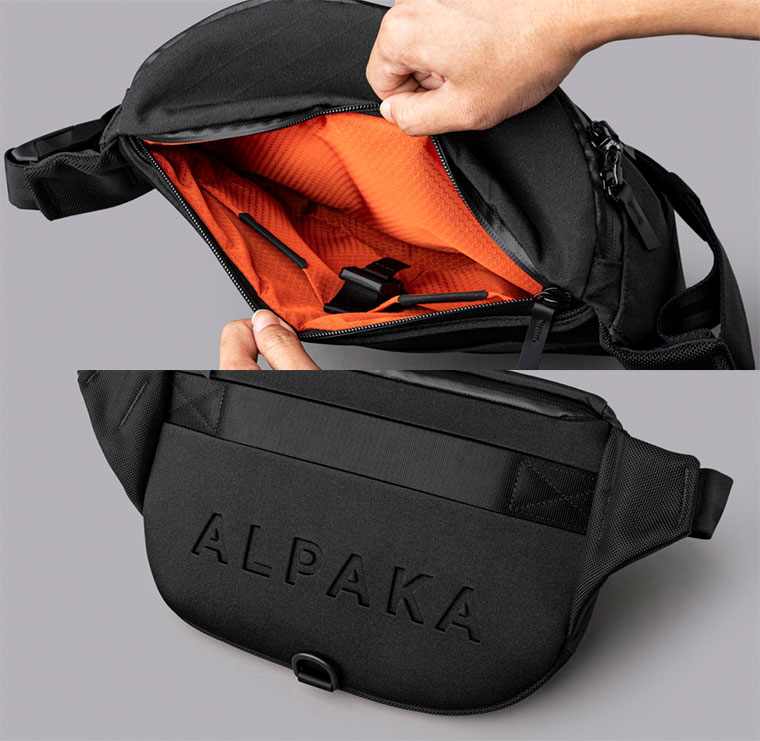 | 仕様 | 前面: ファスナーポケット×1(内側にキーテザー×1)、メインコンパートメント(オープンポケット×2、タブレットスリーブ×1) 背面: ファスナーポケット×1(内側にオープンポケット×2、HUBマグネティックキーチェーン×1)、持ち手×1 側面:USB充電ポート(USB-Cケーブル付属)、SIM・MicroSDカードホルダー、SIM取り外し用のピン付属、取り付けループ×2 |