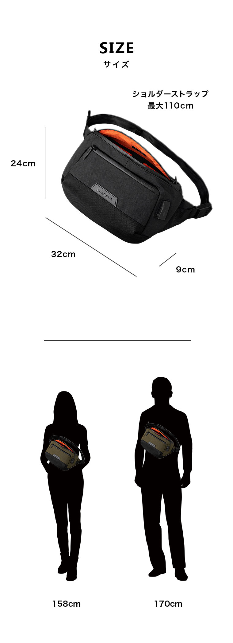 | サイズ(約) | [本体]タテ24cm×ヨコ32cm×マチ9cm、[ショルダーベルト]110cm |