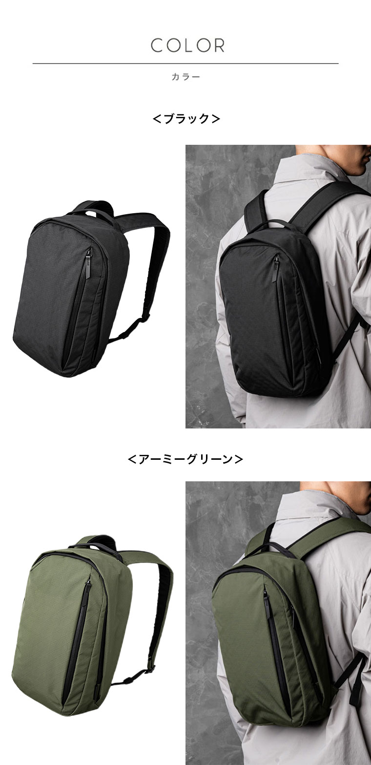 普段、AbleCarryの21?のバックパックを使っていたのですが、もう少しコンパクトなバックが欲しくて購入しました。荷物もそのまま移行出来たし、シルエットがとにかくシンプルでかっこいいです。