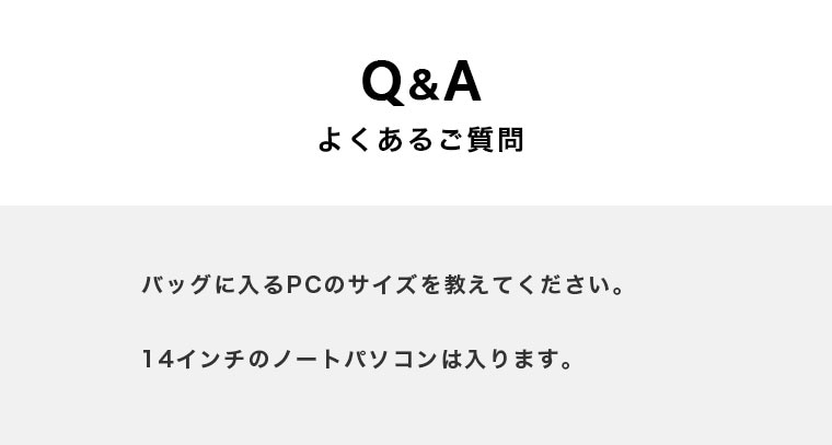 | 仕様 | 前面ファスナーポケット: ペンホルダー×2、オープンポケット×2 メインコンパートメント: ラップトップ収納用ポケット(14インチまで)×1、オープンポケット×3、ファスナーポケット×1、ボトルポケット×1 |