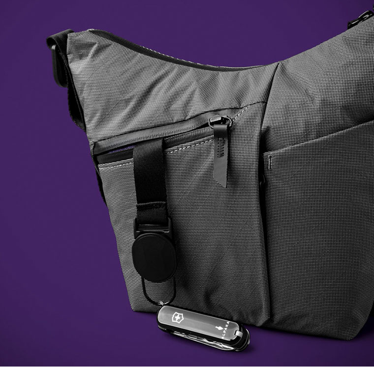両側面とショルダーに、取り付けループ付きでHUB アクセサリ (別売) に対応可能。