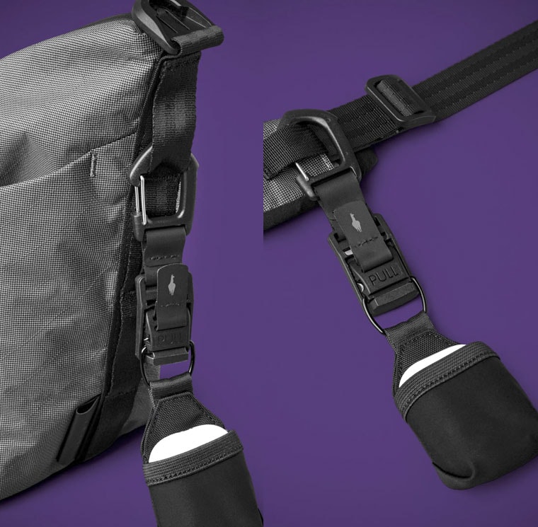 ショルダーストラップは、パッド付きで肩への負担を和らげてくれます。 マグロックバックル使用で簡単に取り外し可能です。