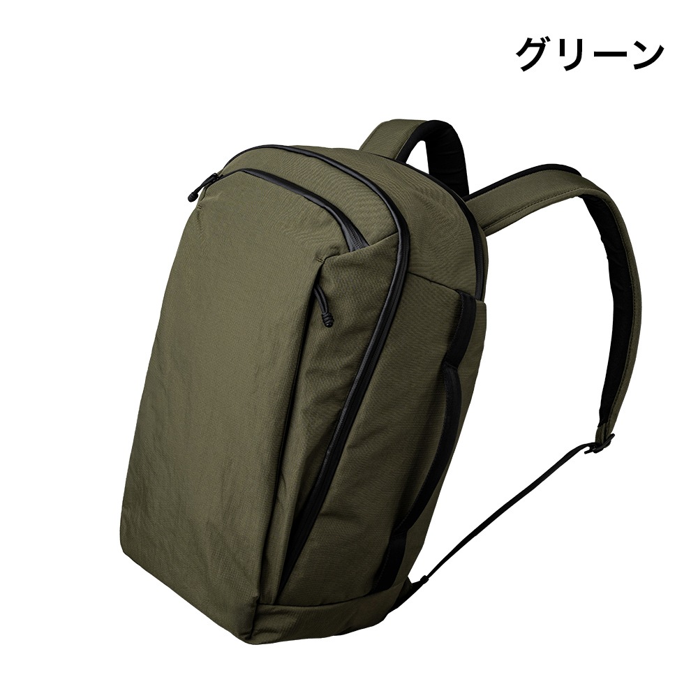 | 仕様 | 前面:ファスナーポケットx3(内1つのポケット内にオープンポケットx2、ペンホルダーx2、MODキーテザーx1) メインコンパートメント:パソコン用スリーブ×1、ファスナーポケット×4 背面コンパートメント:パソコン用ファスナーポケットx1(16インチパソコン収納可能) 背面:ファスナーポケット×1、持ち手×1、キャリーハンドル用ベルトx1 側面: ボトルファスナーポケットx1、持ち手×1 ショルダー:HUB アクセサリー (別売) 取り付けループ |