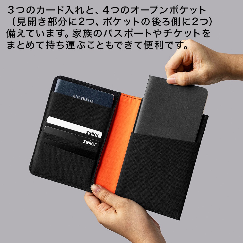 3つのカード入れと4つのオープンポケットを備えており、パスポートやチケットなどをきちんと整理しながら収納可能です。