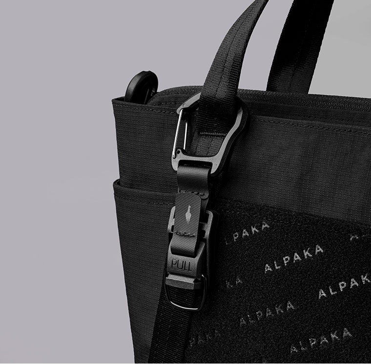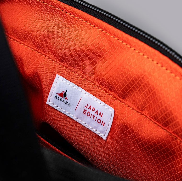 前面ポケットにはALPAKAロゴ入りの面ファスナーを使用しており、別売りのALPAKAパッチを取り付けることが可能です。