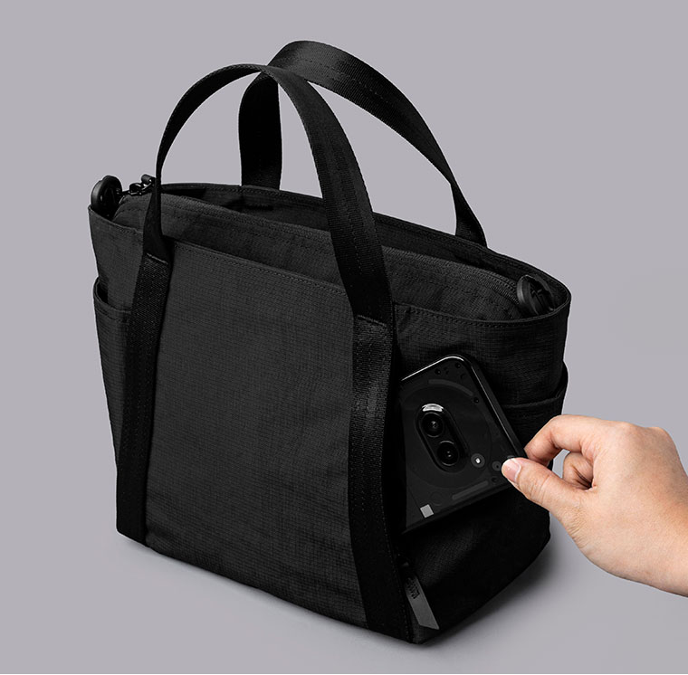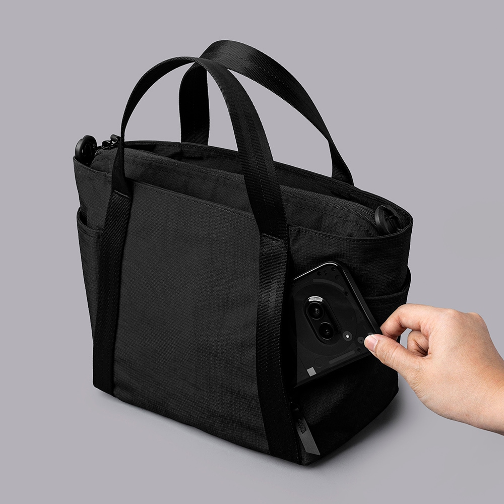 小さめサイズで多彩なポケット付きミニトートバッグ。